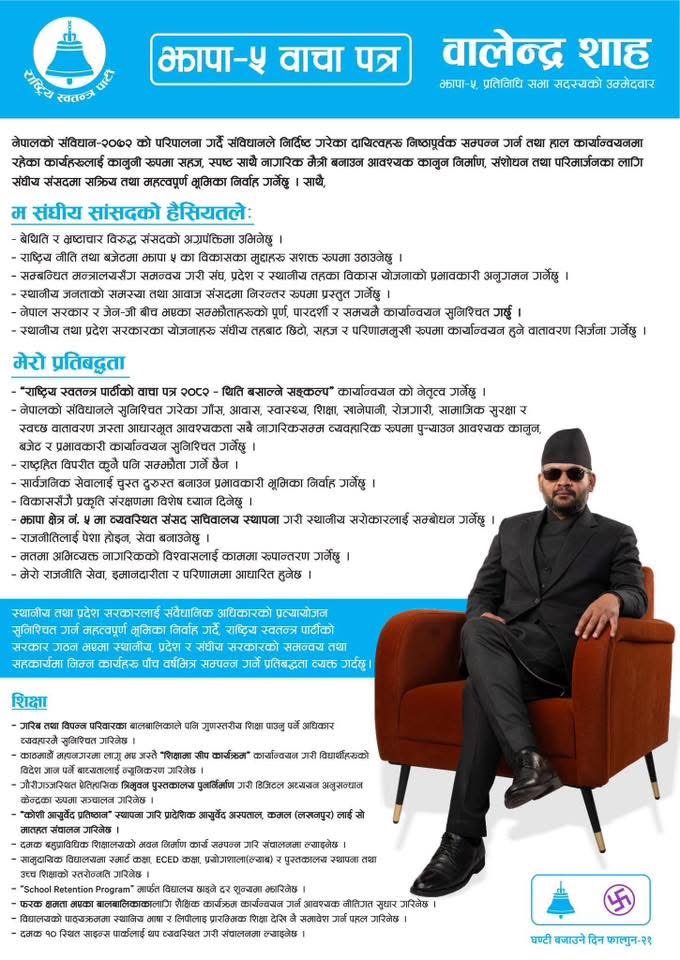 बालेनको यो बाचापत्र झापा केन्द्रित विकास र सुकुमवासी समस्या समाधानमा केन्द्रित रहेको छ।