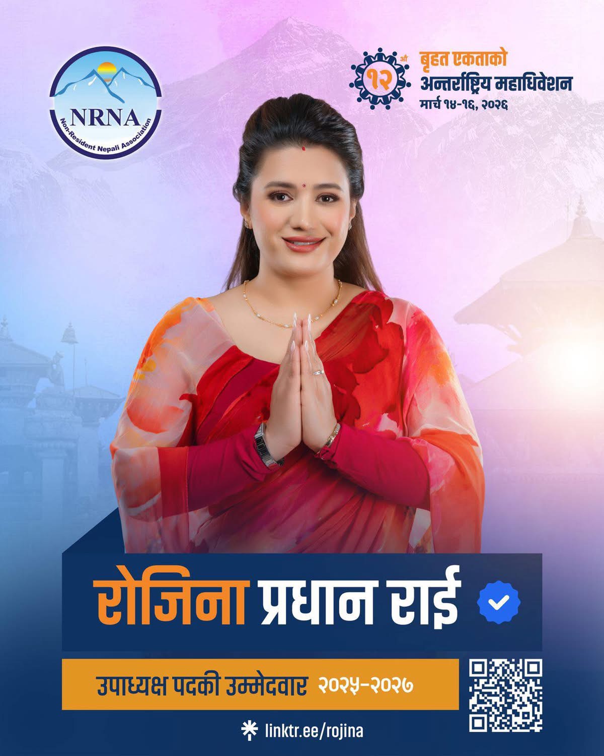 काठमाडौं । गैरआवासीय नेपाली संघ (एनआरएनए) को आगामी १२औँ विश्व सम्मेलन तथा अन्तर्राष्ट्रिय महाधिवेशनलाई लक्षित गर्दै रोजिना प्रधान राईले उपाध्यक्ष